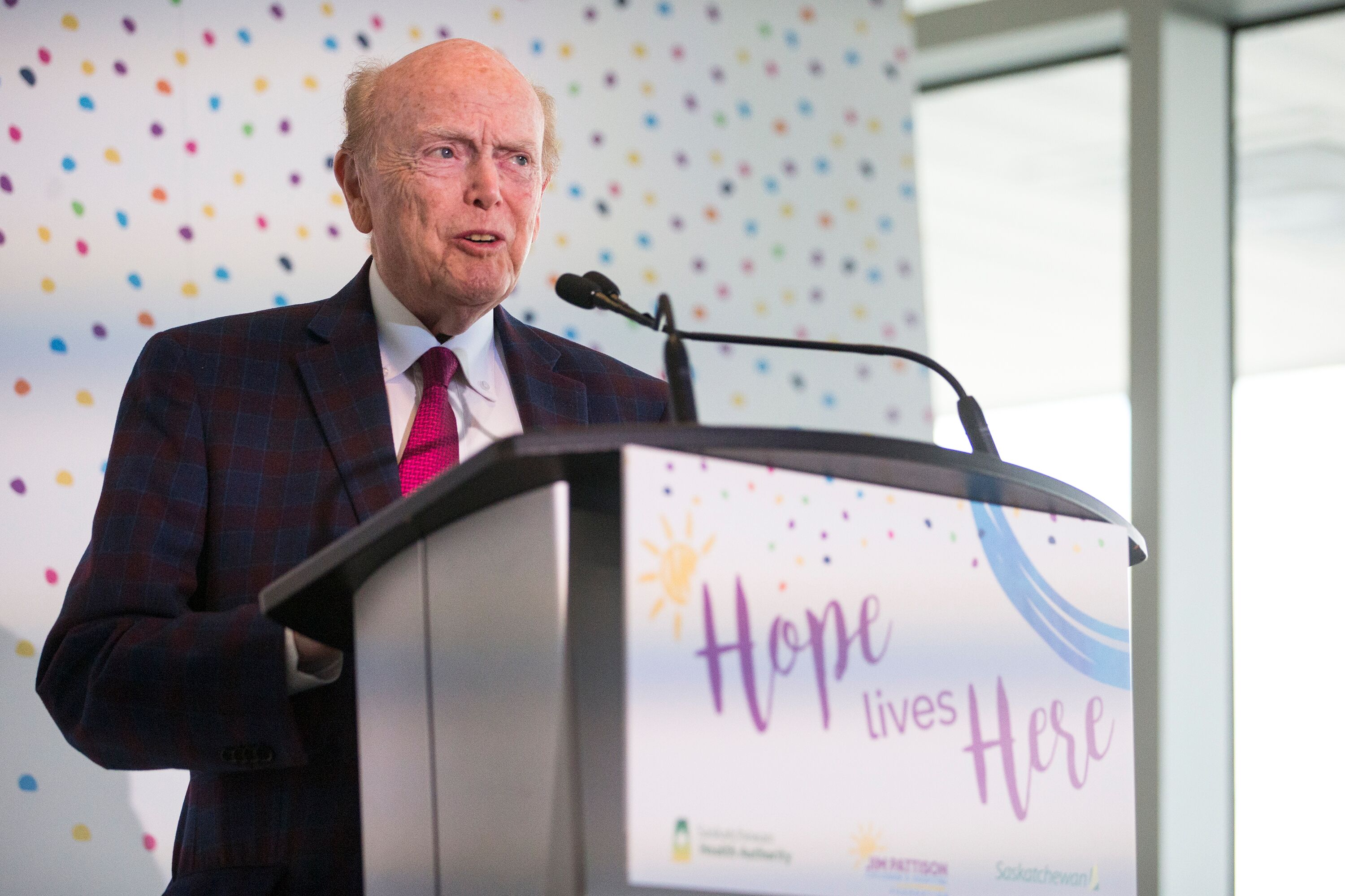 Jim Pattison spoke at the opening ceremony for the children’s hospital that now bears his name after a $50 million donation in 2017. (Liam Richards – Postmedia)