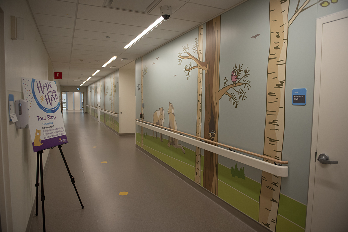 The hallways of the hospital are lined with creative graphic. The decor and art throughout the building emulate Saskatchewan. (Tyler Marr/battlefordsNOW Staff)