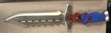 Police found one of the men who matched the description of a witness, who was found to have the machete stuffed into his pants, along with a second knife and a small quantity of methamphetamine.