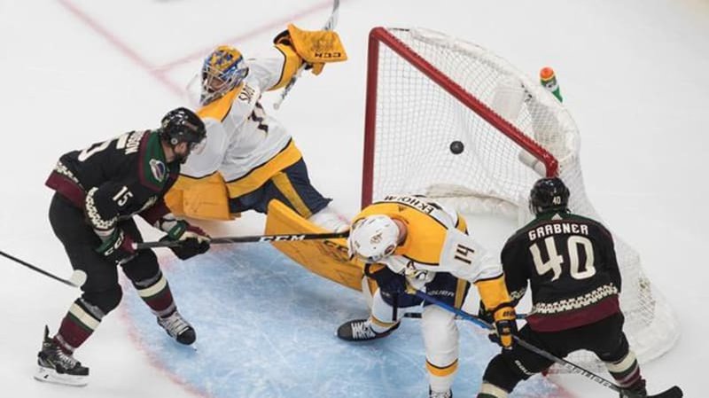 The Coyotes, the Western Conference’s No. 11 seed, took a 2-0 lead early in the second period. But they allowed Nashville to tie it before going ahead 3-2 on Jordan Oesterle’s goal early in the third.