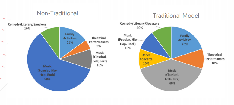 The flexible performance space would hold upwards of 1,200 attendees, be 36,000 square feet, and allow for a variety of configurations such as music concerts, banquets, and other events.