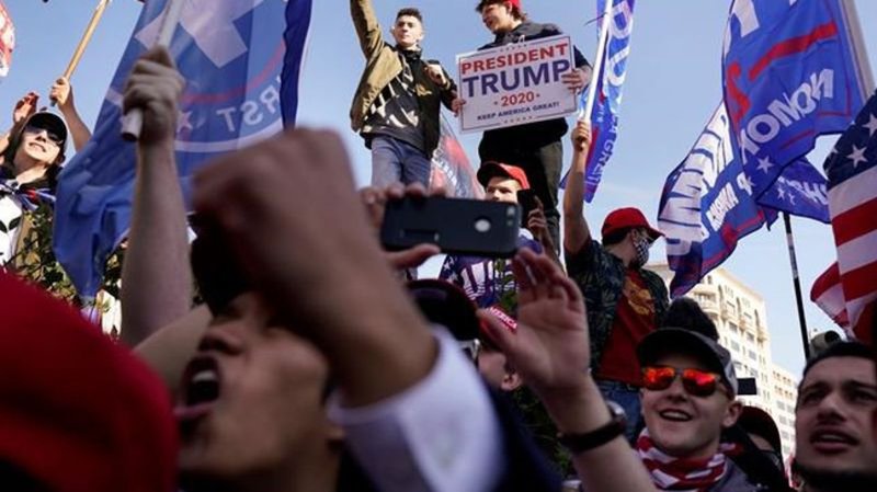 Trump himself had given an approving nod to the gathering Saturday morning by dispatching his motorcade through streets lined with supporters before rolling on to his Virginia golf club. People chanted “USA, USA” and “four more years,” and many carried American flags and signs to show their displeasure with the vote tally and insistence that, as Trump has baselessly asserted, fraud was the reason.