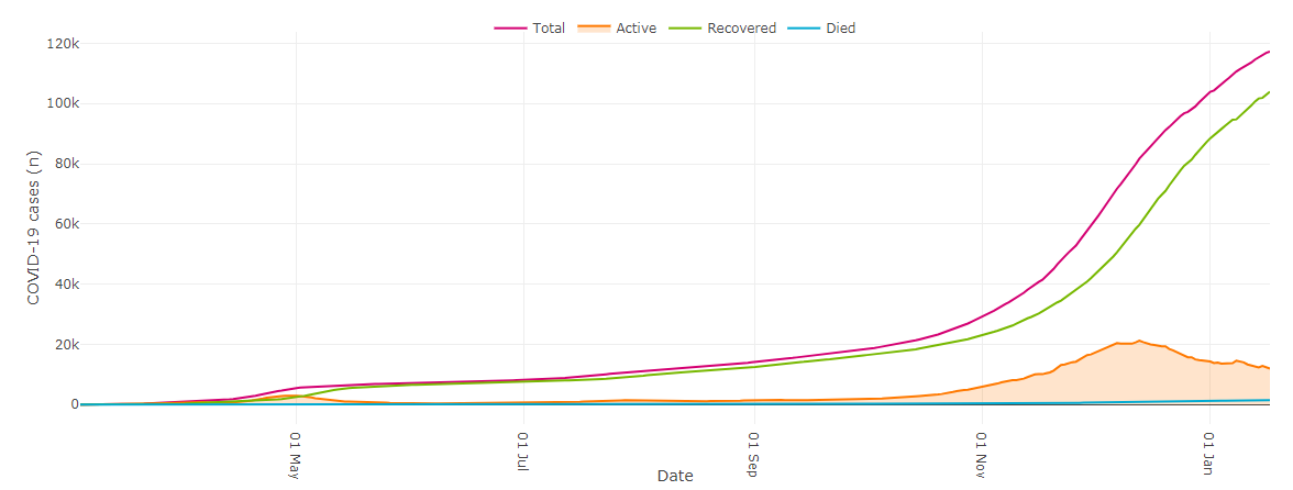 474 cases were confirmed across the province, bringing the total to 117,311. Of those, 11,923 cases are active while 103,941 people have recovered.