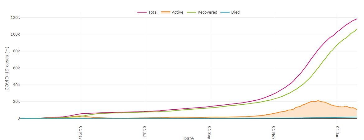 Below is a graph of how COVID-19 cases in Alberta have trended since the start of the pandemic, which can also be accessed with more detail here.