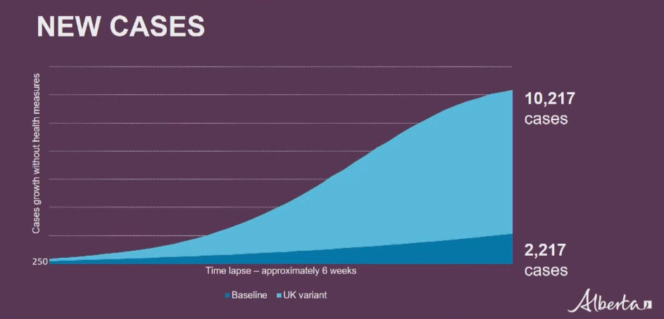 LETHBRIDGE, AB – Alberta’s Minister of Health has released projections on how the variants of COVID-19 could spread without public health restrictions in place.