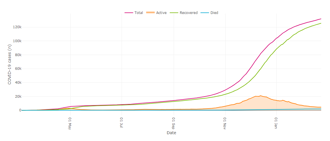 399 cases were confirmed across the province, bringing the total to 132,432. Of those, 4,484 cases are active while 126,074 people have recovered.