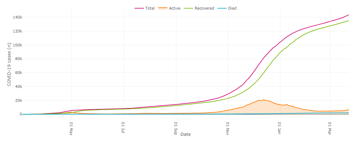764 cases were confirmed across the province, bringing the total to 144,311. Of those, 6,835 cases are active while 135,500.