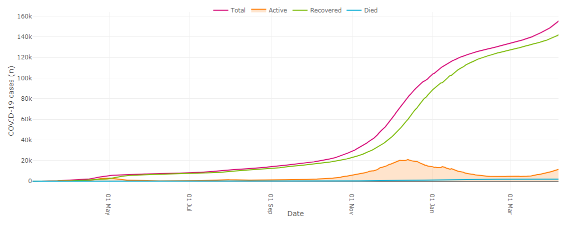1,351 cases were confirmed across the province, bringing the total to 155,476. Of those, 11,464 cases are active while 142,010 people have recovered.