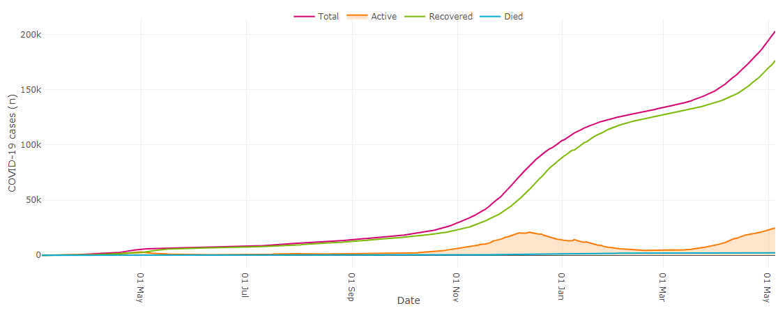 2,211 cases were confirmed across the province, bringing the total to 203,135. Of those, 24,497 cases are active while 176,536 people have recovered.