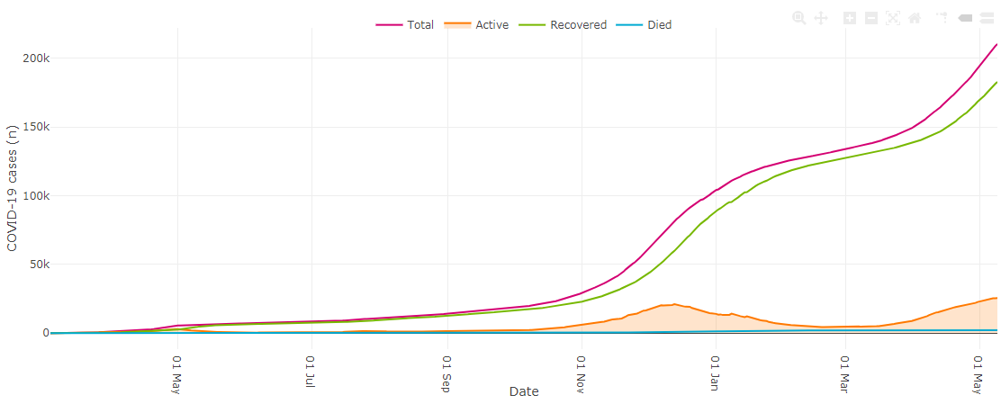 1,449 cases were confirmed across the province, bringing the total to 211,836. Of those, 24,998 cases are active while 184,719 people have recovered.