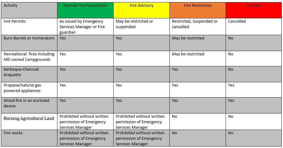 Regulations around fire restrictions (MD of Willow Creek No. 26 on Facebook)