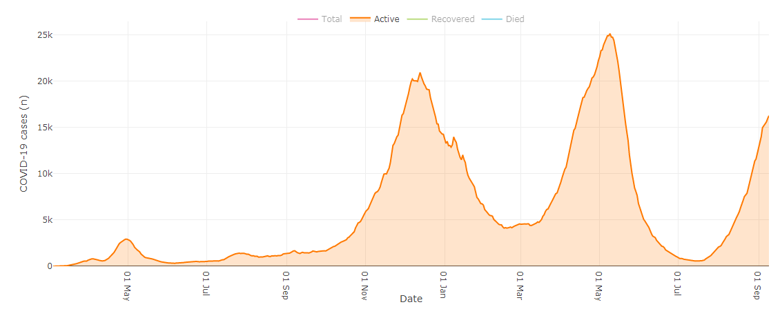 Active infections in the region went up by 33.