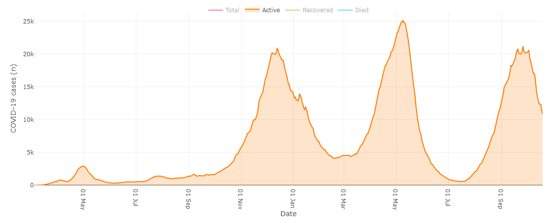 Active infections across the region fell by 39.
