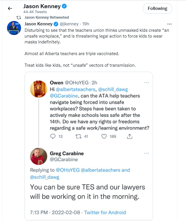 Schilling is also frustrated by a tweet that Premier Kenney sent out following Tuesday’s news conference that said it was “Disturbing to see that the teachers union thinks unmasked kids create an unsafe workplace.”