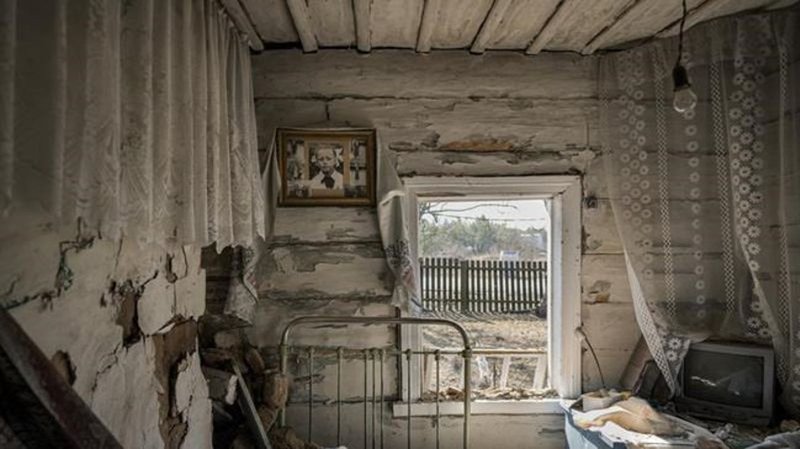 The village church’s tower was damaged by a blast, and houses on the main crossroads lay in ruins.