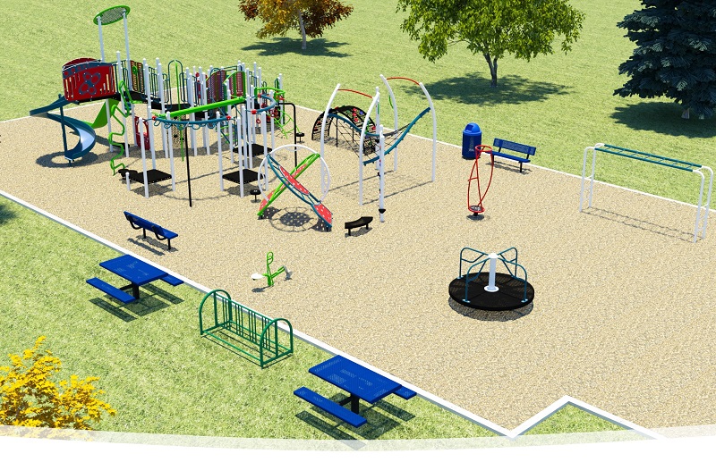 Additional features to the playground include picnic tables, benches, a bike rack and garbage cans. The area will also see upgrades to the basketball and tennis courts with: