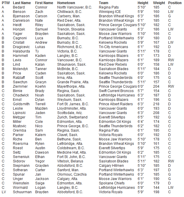 You can see all of the WHL players on the Preliminary Players to Watch List below: