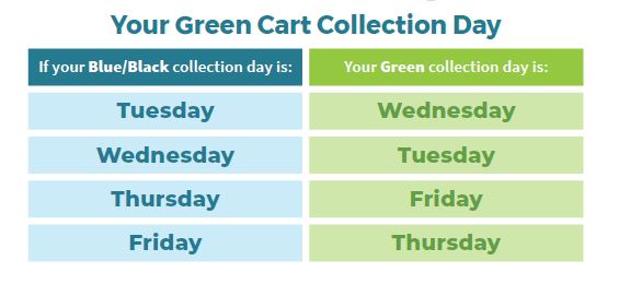 Green cart collection will take place weekly from May to October and bi-weekly from November to April.