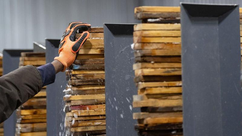 Workers stack and sort softwood lumber at Groupe Crete, a sawmill in Mont-Blanc, Que., Monday, Jan. 20, 2025. Statistics Canada released its January jobs report this morning. (Photo: Canadian Press)