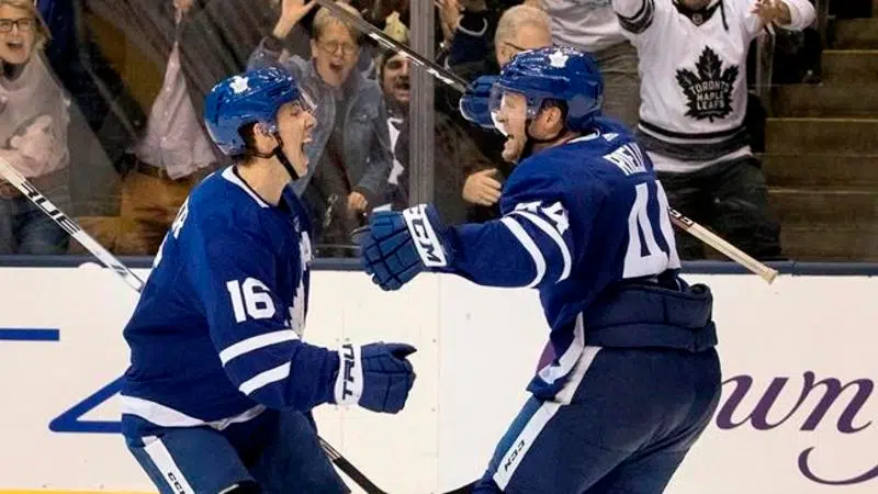 TORONTO - Mitch Marner and Auston Matthews have played sparingly together at even strength early in their careers. With the Maple Leafs' injured captain looking down from the press box Satur...