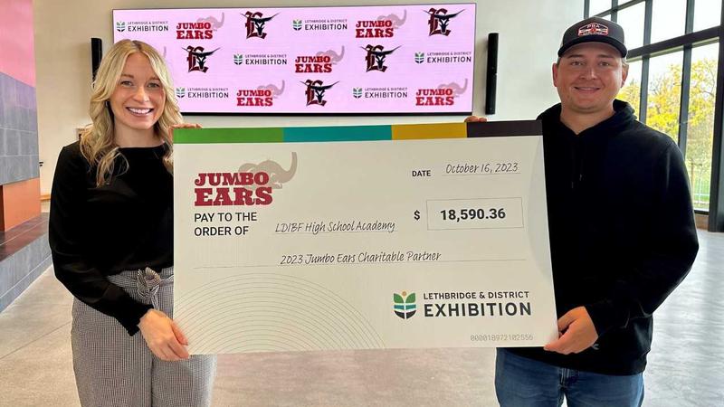 LETHBRIDGE, AB - The sale of Jumbo Ears has lead to a jumbo donation.The Lethbridge & District Exhibition has announced a donation of $18,590.36 to the Lethbridge & District International Base...