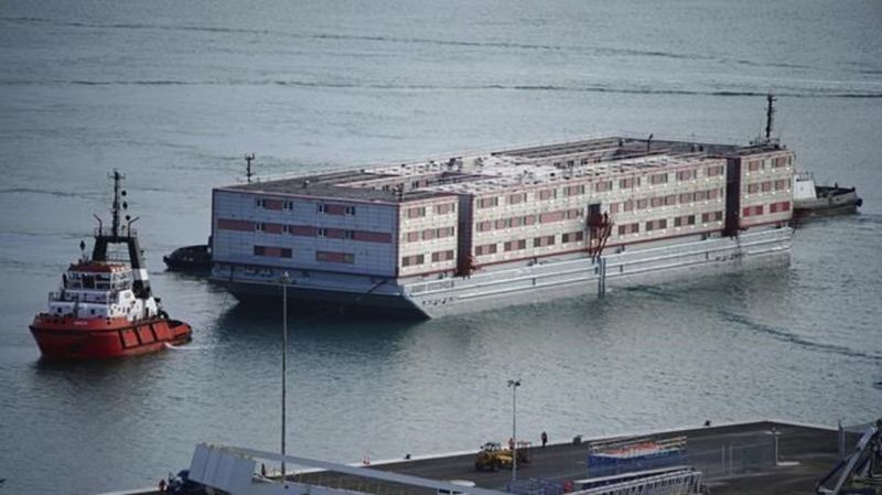 Barge to house asylum-seekers arrives in UK as Parliament passes controversial migration bill
