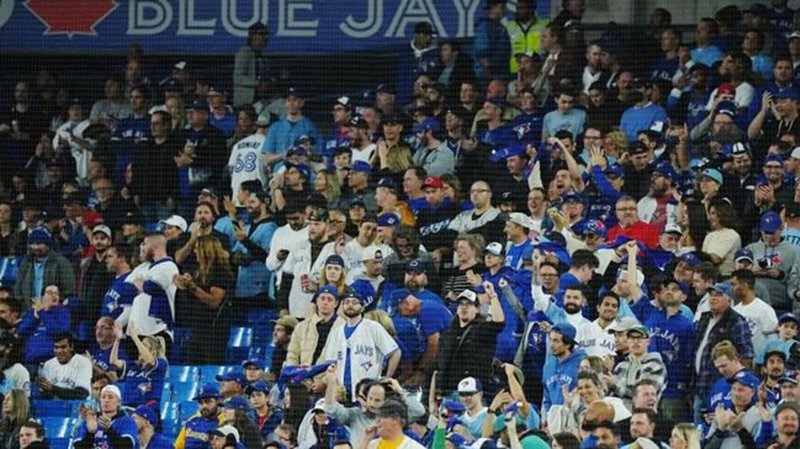 Toronto fans gather to cheer on the Blue Jays in wild-card opener