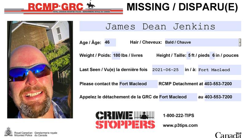 FORT MACLEOD, AB - James Jenkins, 47, has been missing June 25, 2021, and Fort Macleod RCMP are seeking assistance from the public in locating him.Jenkins was last seen by family on Friday in Fort Mac...