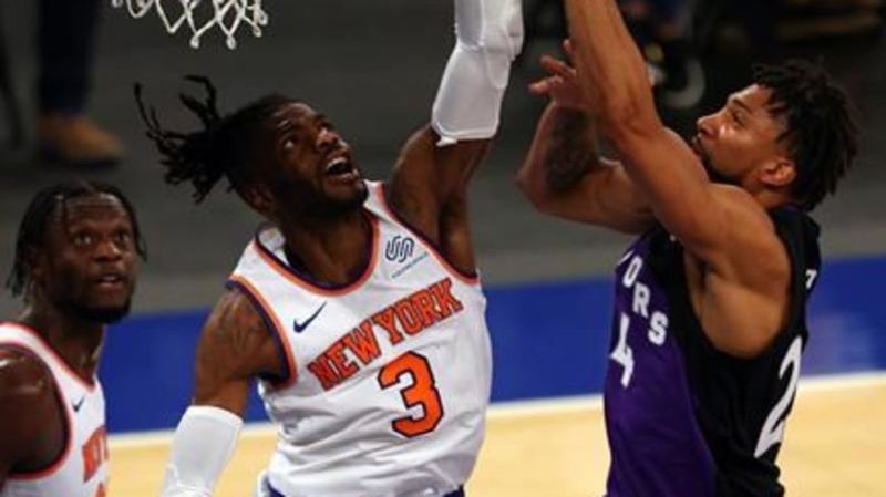Knicks recover after blown lead to beat Raptors 102-96