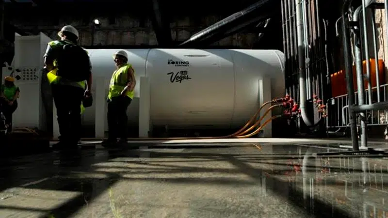 LAS VEGAS - Drilling began Friday for a $52.5 million underground people mover being built by a company backed by billionaire Elon Musk to whisk passengers between exhibit halls at an expanded Las Veg...
