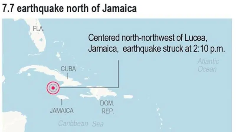 Mag 7.7 quake hits between Cuba and Jamaica, but no injuries