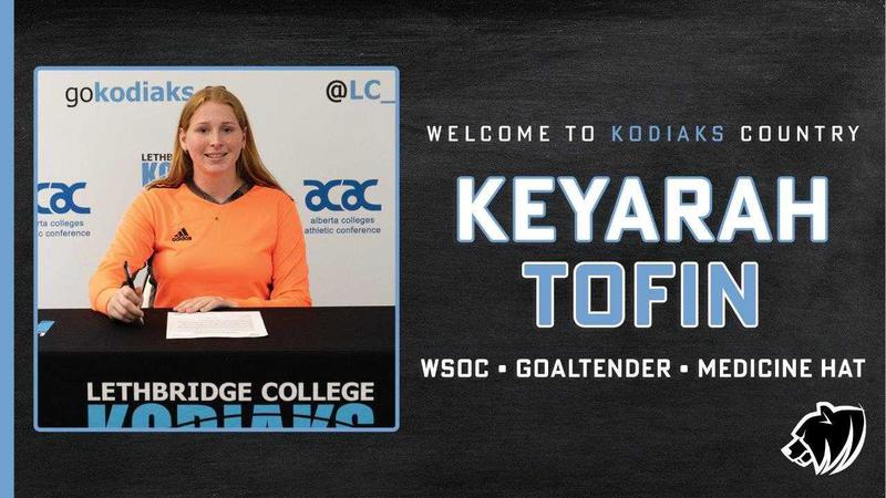 LETHBRIDGE, AB - The Lethbridge College Kodiaks women's soccer team has added a new goaltender.The Kodiaks announced on Tuesday, August 8, 2023 that they signed Keyarah Tofin, a netminder from Medicin...